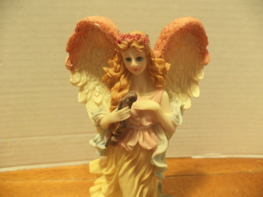 Vintage Resin 7” Angel Figurine Yellow Robe Violin Racoon Red Blue
