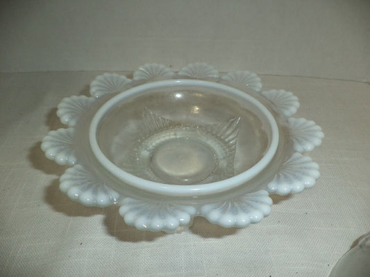 Pressed Scalloped Sawtooth Cut Glass Bowl