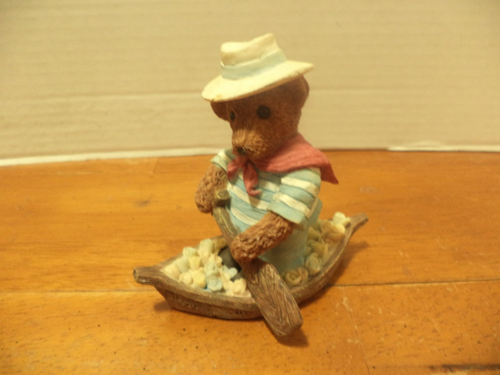 This small multicolored resin figurine of a bear is perfect for adults to display in any room. Made in China during the late 20th century, it features a matte finish and is unboxed. This original piece is a great addition to any collection of decorative figurines, especially for those who appreciate unique and whimsical decor.