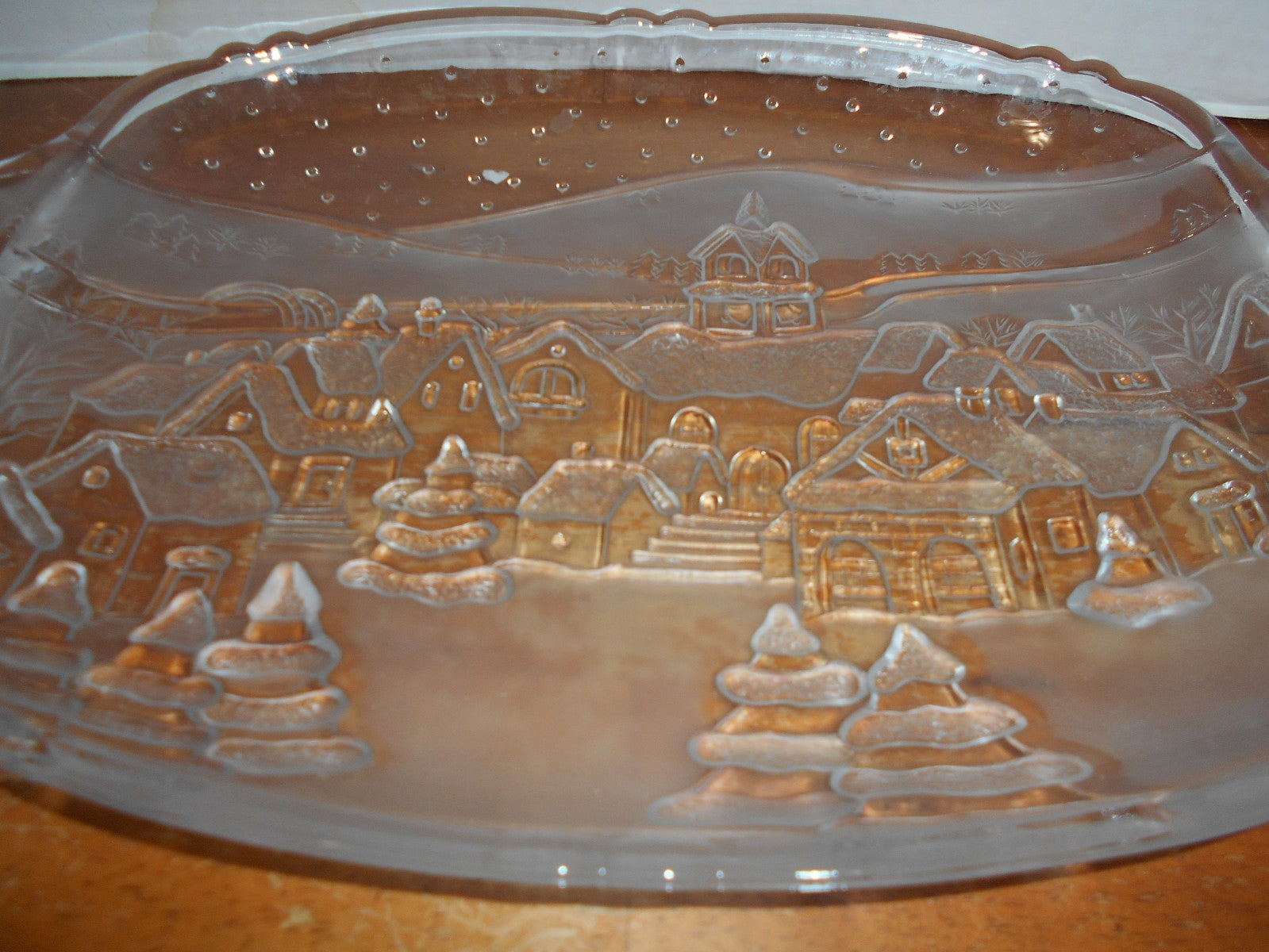 Crystal Clear Studios Embossed Winter Scene Serving Platter W/ Handles 92’ Japan