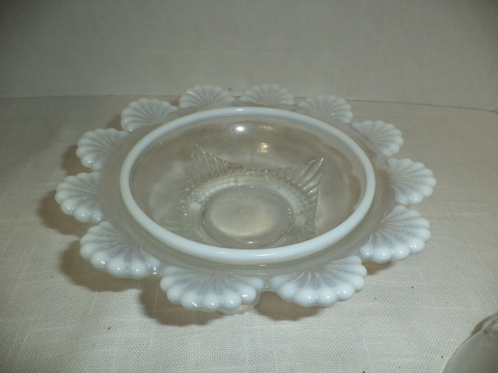Moser French Opalesecent Beaded shell Butter Dome. Ohio, measures 7" x 6 1/2".