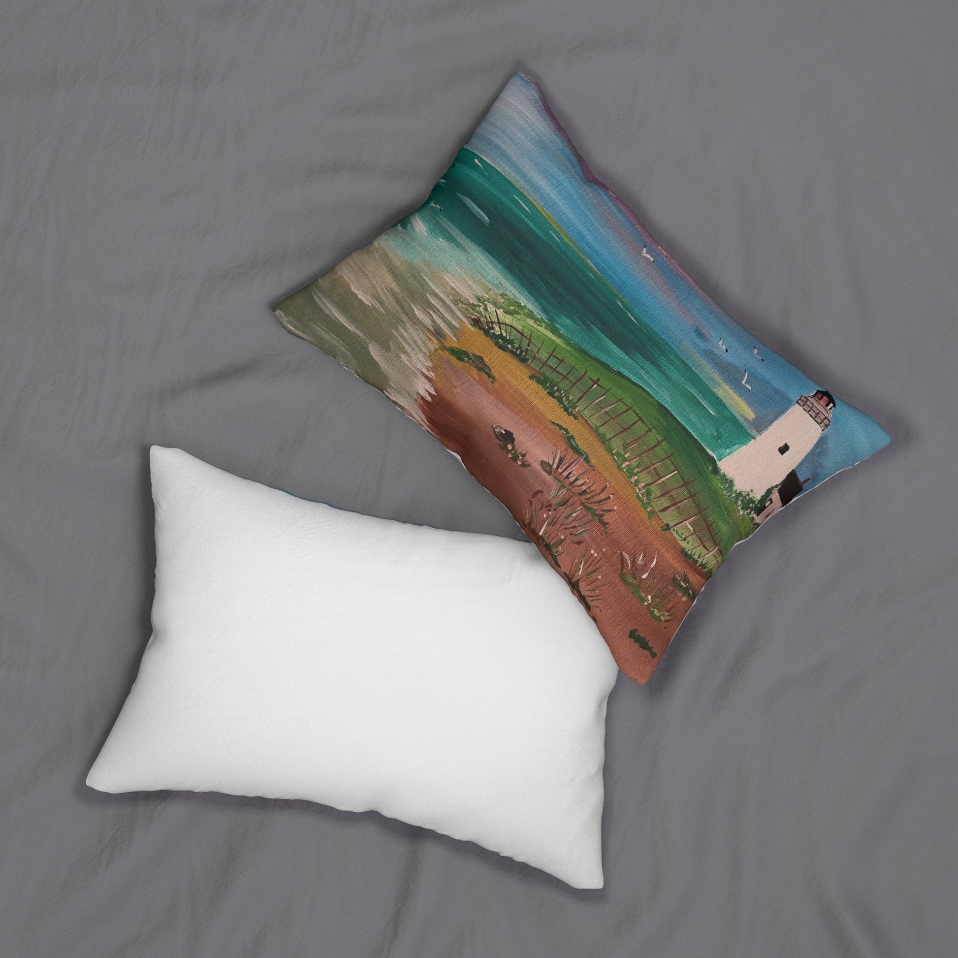 Add this beautiful spun-polyester lumbar pillow to your home decor pieces today. It comes with a stuffing pillow included. The casing is made of a spun polyester fabric that is inherently mildew and water-resistant. It has a hidden beige zipper to maintain a finished and stylish look.