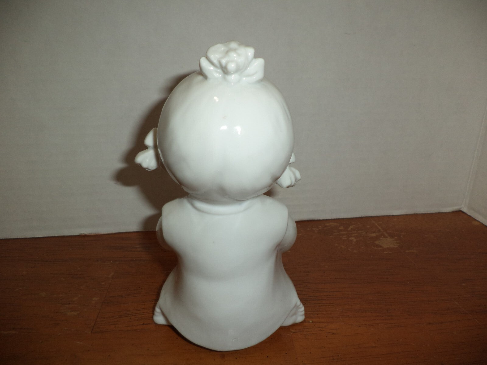Tradional White Porcelain Japanese Figurine Girl With Bird