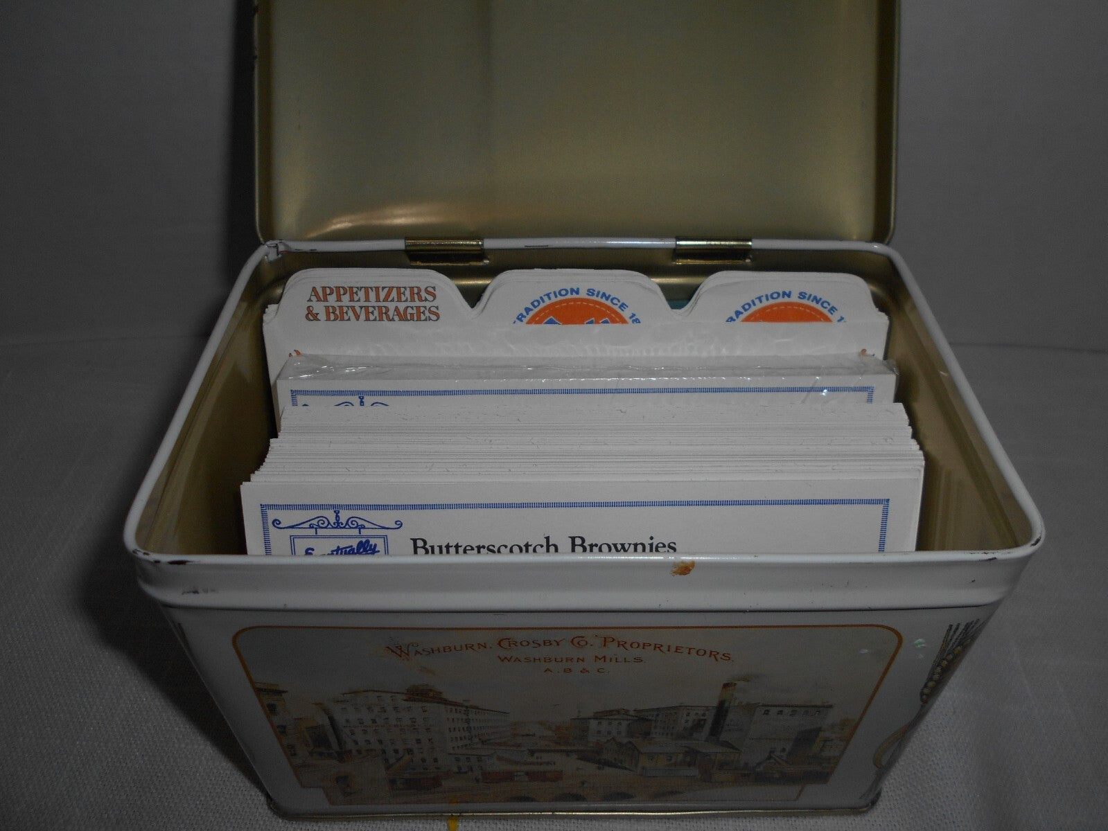Vintage Style Washburn's Gold Medal Flour Metal Recipe Box Tin with Recipe Cards